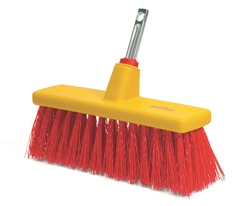 This colourful – it’s red and yellow – yard broom comes from Wolf-Garten, who have a long history of making garden and household products. It’s a 30cm wide broom head with tough PVC bristles and a plastic brush head, plus a fixing that will take any broom handle – the handle is not supplied, so you either have to buy another, or have one around that you are looking to use.