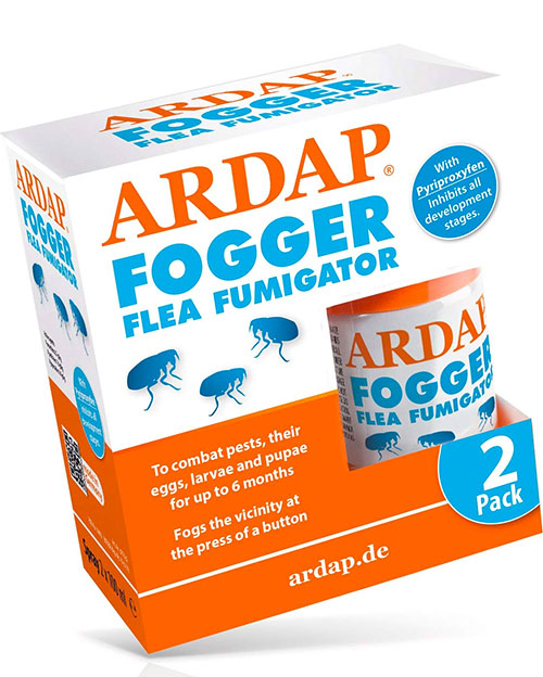 How does a flea fogger work? It’s quite simple: you use a ‘bomb’ which contains a selection of chemicals – more on those later – and set it off in the room and leave it. It kills the fleas, and many other insects too. The problems with some is that they use quite nasty chemicals, and they may not guarantee to destroy eggs that are ready to hatch.
