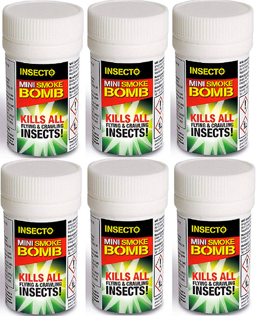 This six pack of ‘mini’ smoke bombs from Insecto comes with all the right ingredients, and although we are told that each bomb is 3.5g, that doesn’t give us much information as to what size of a room these will treat. We will assume that it’s an average size of room in a typical home, and take it from there. It’s said to be effective on a wide variety of insects, so on the face of it things look good.