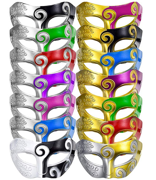 Instead of just attending a masquerade ball are you actually hosting your own event? Do you want to make it easier for all your guests to keep to the theme and have similar styled masks but with different colours? Check out our next item, the 14-piece set of unisex Venetian masquerade masks. All of these masks are made from durable, comfortable and lightweight plastic and won’t feel like they are weighing your face down.