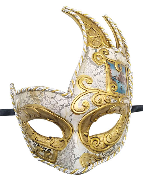 Papier Mache – Whether they are made by hand or machine, paper mache masks are the lightest of them all. You will find that most half face Venetian masks are made from paper mache. This material lends itself to people with wider faces as they tend to be more flexible than resin.