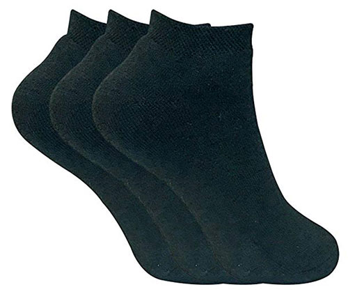 The least expensive of the ladies three-pack socks on this list, these socks come in nice striped designs and are very cheap indeed. The polyester and cotton mix means they are machine washable, they are a ladies 4 to 8 size, and they are designed for sports or daily use. The sole of the socks is cushioned for more comfort, and the material will be warm in the winter while wicking sweat in summer.